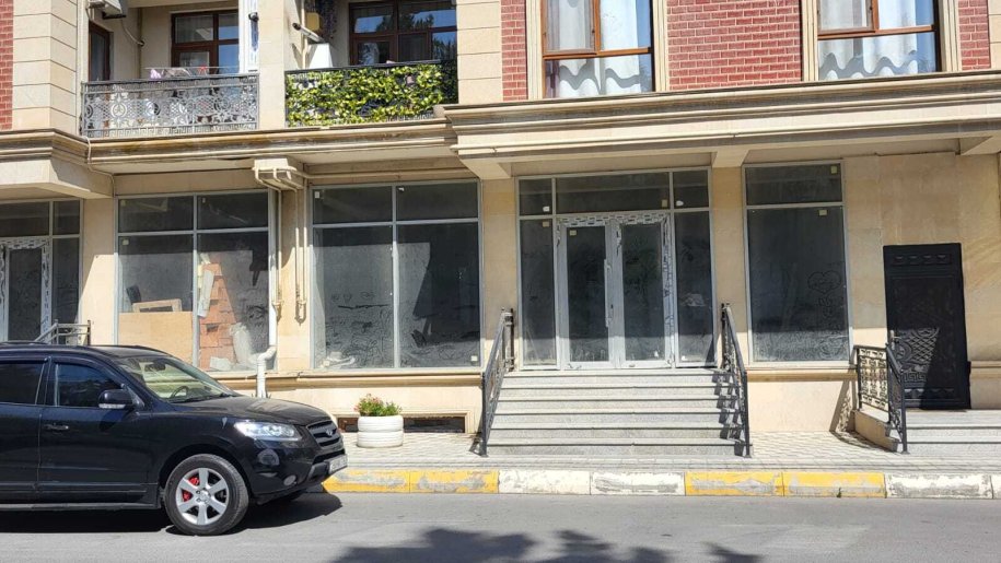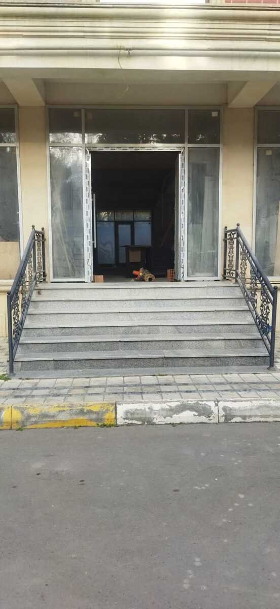 Yeni tikilinin birinci mərtəbəsini bütöv əhatə edir, hər tərəfi vitrindir, 4 girişi əsas yoldan, 4 girişi əks tərəfdəndir, hissə-hissə də satıla bilər