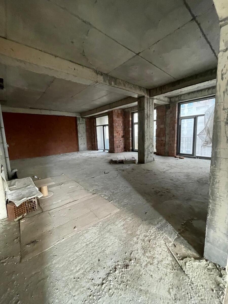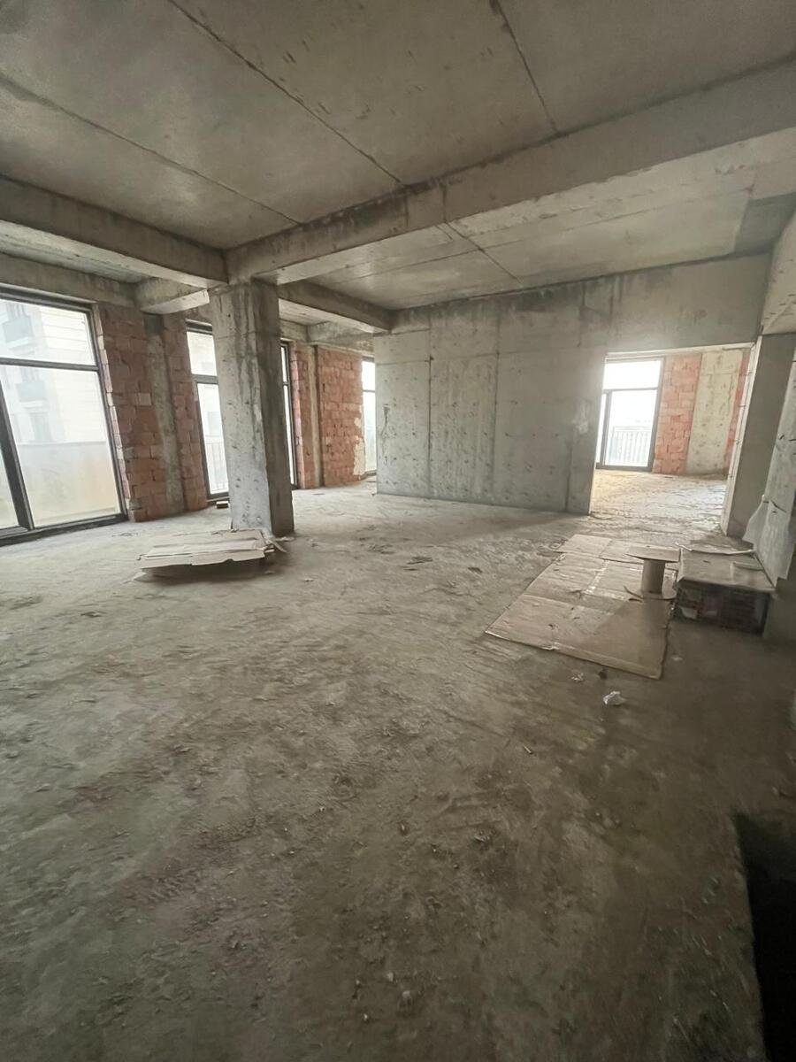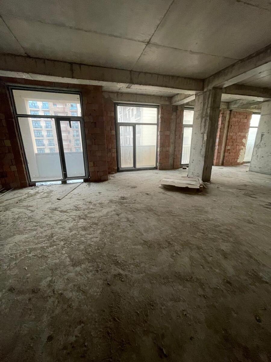 Mənzil 11-ci mərtəbədə yerləşir, qanuni 4 otaq, ümumi sahəsi 195 kv.m., təmirsiz, 1 mətbəx, 2 eyvan, hündürlük 3.4 m., böyuk vitraj pəncərələr, Hər otağa pəncərə düşür, işıqlı və geniş planlama.