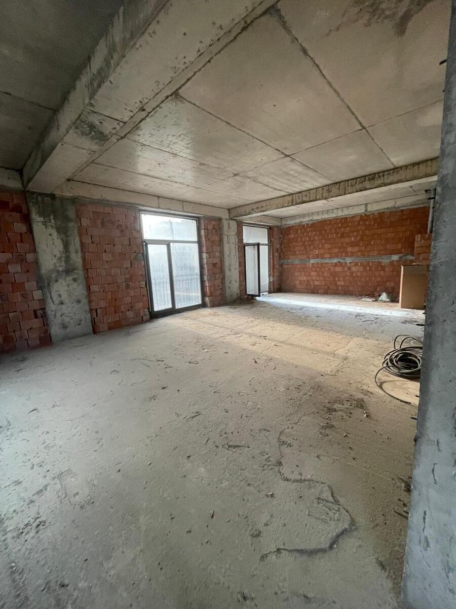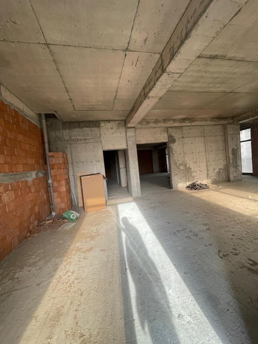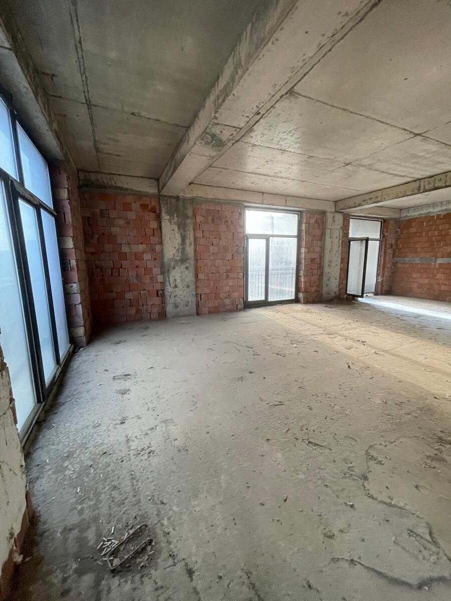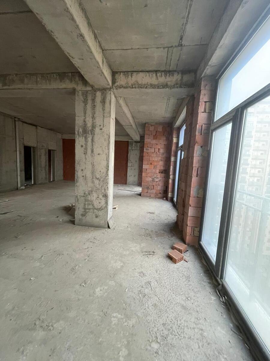 Mənzil 11-ci mərtəbədə yerləşir, qanuni 4 otaq, ümumi sahəsi 195 kv.m., təmirsiz, 1 mətbəx, 2 eyvan, hündürlük 3.4 m., böyuk vitraj pəncərələr, Hər otağa pəncərə düşür, işıqlı və geniş planlama.
