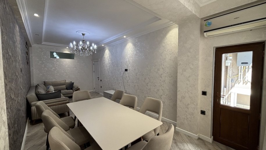 kombi sistemi,paltaryuyan, kondisiner,TV mövcuddur.Çox rahat va komfortlu manzildir.Qaz,su,işıq daimidir.Binada parkiną mövcuddur.Binada 3 lift daimi işlayir.Liftlar birbaşa parkiną martabasina da düşür.Binanın hayatinda hamçinin böyük supermarket va uşaq meydançası da mövcuddur.