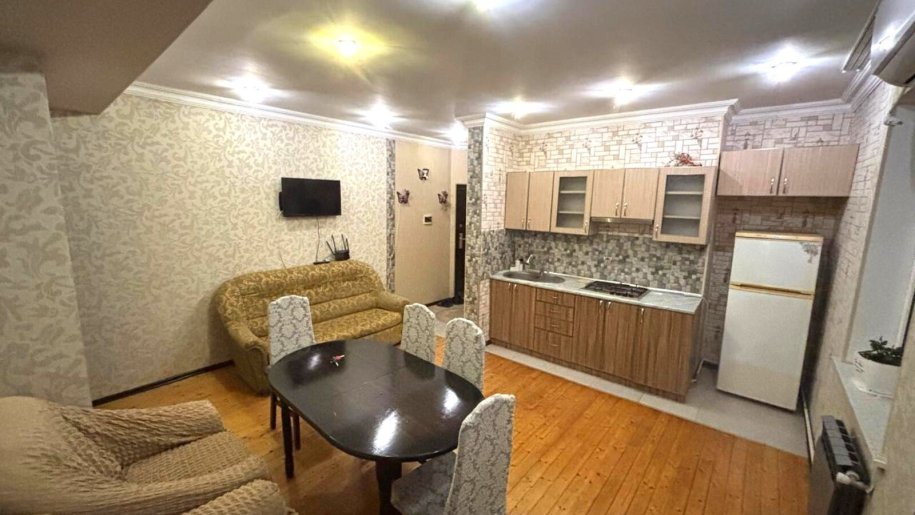 Gəncə prospektində yerləşən 14 mərtəbəli yeni tikili binanın 9-cu mərtəbəsində ümumi sahəsi 70 kv. metr olan yaxşı təmirli və əşyalı 3 otaqlı mənzil uzun müddətli olaraq, ailəyə kirayə verilir. Komendant pulu aylıq ödənişə daxil deyil.