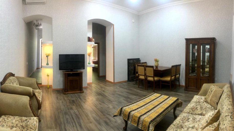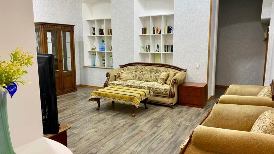 Sheherin tam merkezinde,Tarqovi,Fevvareler baqinin bir addimliqinda, arxitektur binada, girishi birbasha esas yolda blokdan olan iki eyvanli yola baxan menzil satilir.
