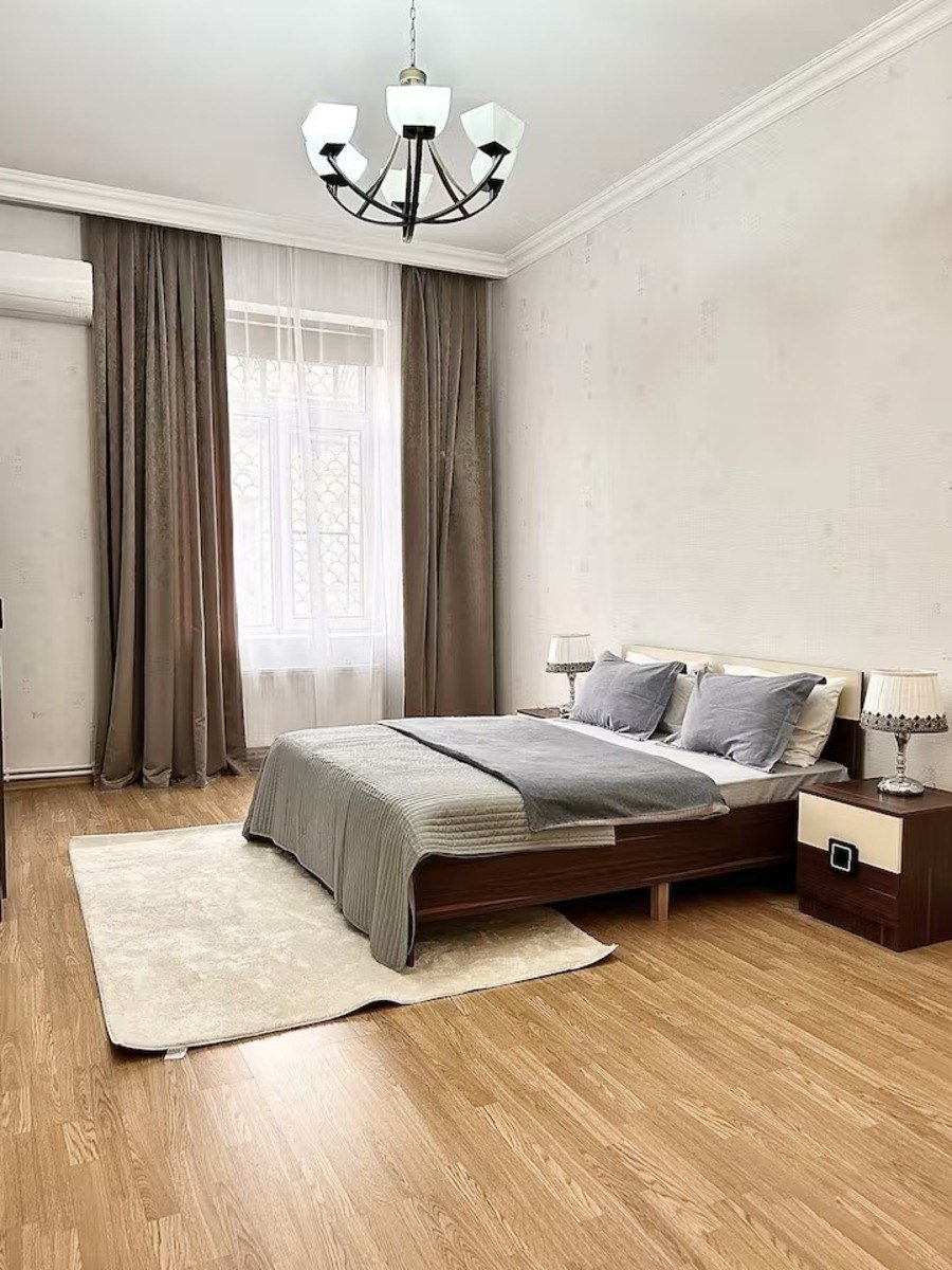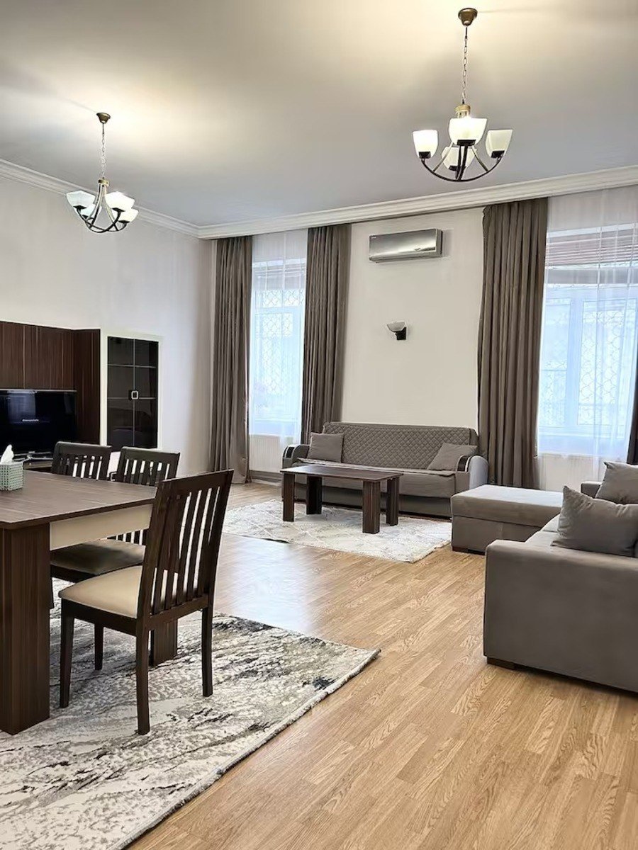 Сдается 2-х комнатная квартира в Центре напротив Бульвара, около Кукольного театра. Площадь 100 кв.м. ¾. Архитектурный дом. Отличный ремонт. Полная обстановка. Интернет. Комби система отопления.
