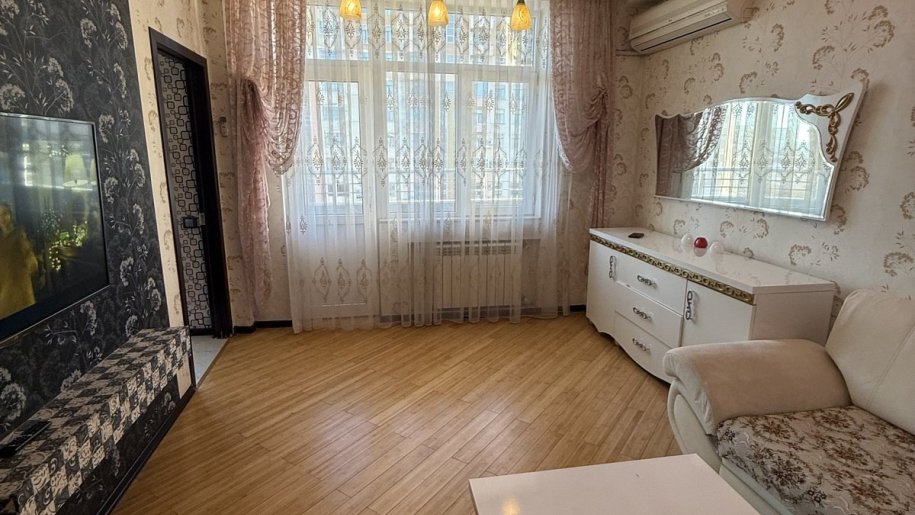 Abdülvahab Salamzada 1015 Baku mola yaxin tiblisi prospekte cox yaxin Yasamal polis idaresinin yanidaki bravo marketin usdundeki bina 18 mertebeli binanin 13 cu mertebesinde yerlesir. Menzil 2 otaqdan ibaretdir tam temirli esyali isdi polu doseme parket kombisi kondisaneri kupcali tam yasayisli binadir șehere ela menzeresi var