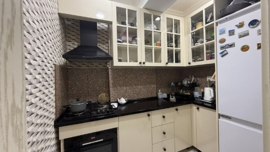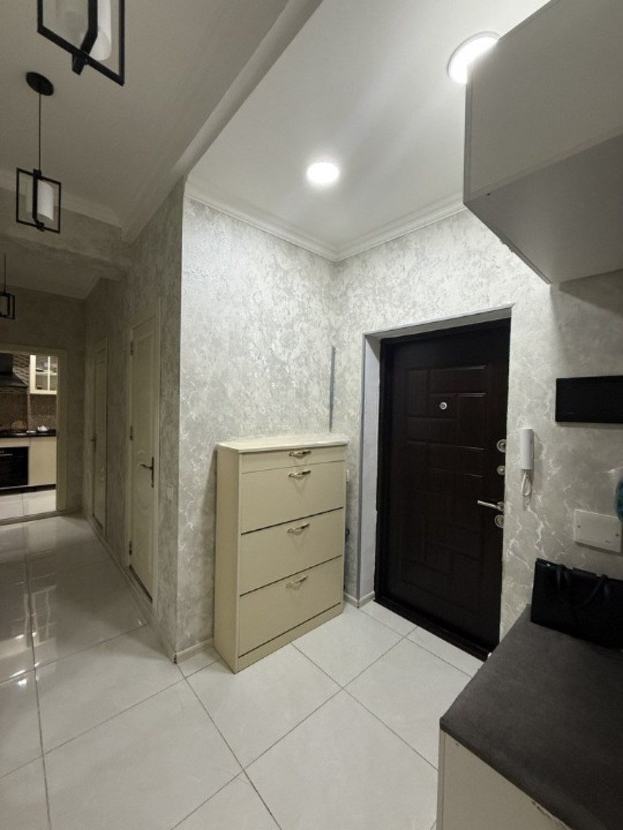 Mənzil işıqlı, gözəl, əla təmirli, qanuni 2 otaqdan 3 otağa birinci işıqla düzəldilmiş, 2 ayrı sanitar qovşağı, 1 açıq balkonu, geniş mətbəxi (böyük dəhlizin bir hissəsində düzəldilib) və dəhlizi. Keramoqranit hissələr isti döşəmədir. Mənzil əşyalı satılır.
