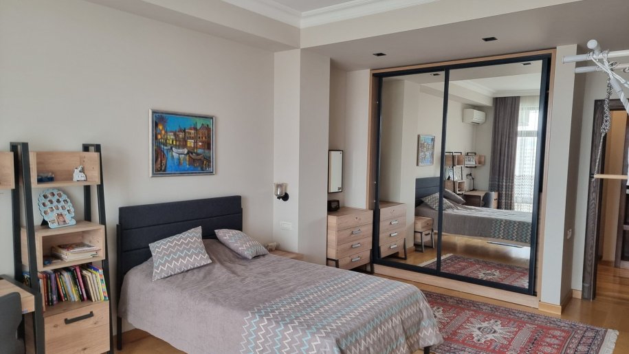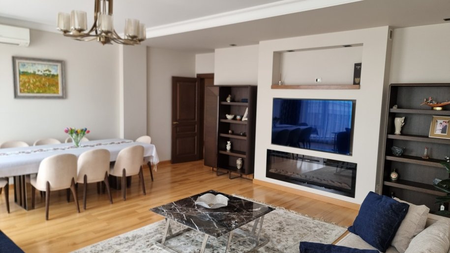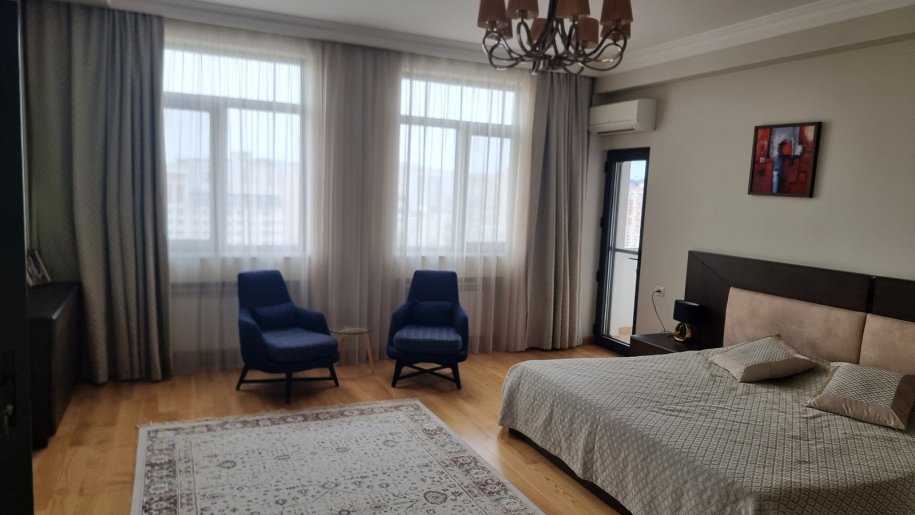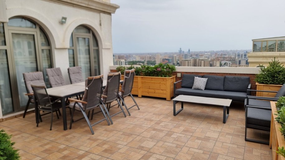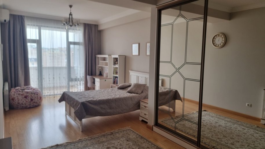 Mirvari park. Mənzil 400 m2 (yaşayış sahəsi - 300 m2, terras - 100 m2), 4 yataq otağı, 3 sanitar qovşağı, zal, mətbəx, qarderob, texniki otaq, boyler otagi. Əla təmirli, əşyalı satılır.