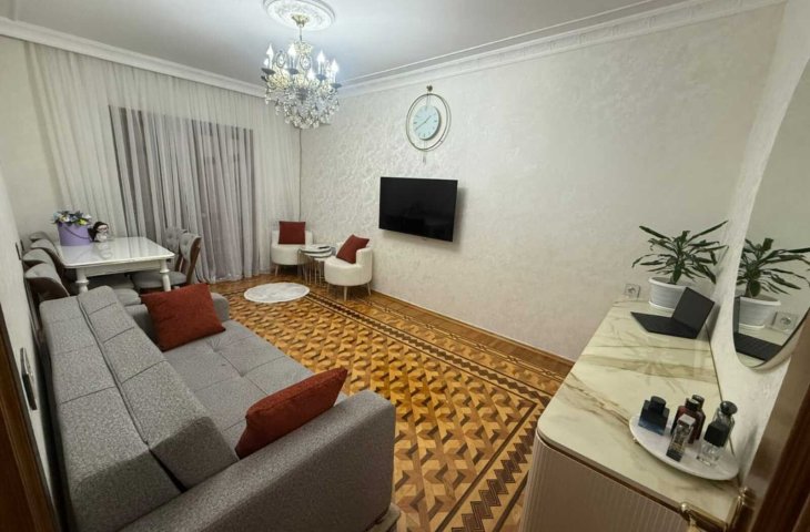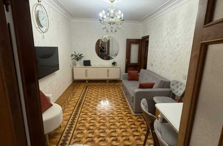 1-2.m."28 May"(Azadliq pr.cixisi).Nesimi Polis idaresinin yahinliqinda.Avro temirli.Pol laminat.Balkon aciq.Kombi istiliq.Evde var:S/stul,taxt,divan,sifoner,2tumbocka.Xol.,paltar yuyan masin,split kond.,KTV,Internet.Kuxna-studiya mebel.San.qovsaqi bir yerde,Dus,kombi.Qaz,isiq,su-daimi.Depozit teleb ...
