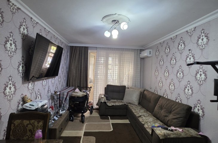 Sumqayit şəhəri, 30-cu məhəllə, 5/1 mərt. 2 otaq, əlavə 1 otaq artırılma (16 m2), orta ev, daş bina. Mənzil orta təmirlidir, mətbəx mebeli. Mərkəzi bazarla üzbəüz, ətrafda 16 saylı məktəb və uşaq bağçası var, bulvara yaxın. Qaz, su, işıq daimi var. (Əmlakçılar nar ...