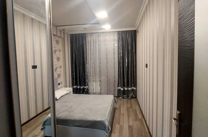 Mənzil H.Aslanov metrosundan 3 dəqiqəlik məsafədə yerləşir. Binada 2 sürətli lift var. Mənzildə daimi su, işıq, qaz, kombi sistemi, kondisioner, televizor, mətbəx mebeli, 2 divan, stol, stullar, yataq otağında taxt, dolab, dəhlizdə dolab, internet, ehtiyyat su çəni var, mənzil ...
