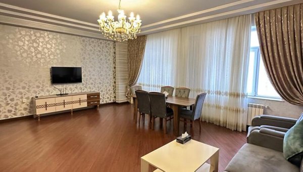 Рядом с Гянджлик моллом, в новостройке, сдаётся 3-х комнатная квартира с ОТЛИЧНЫМ ремонтом. Квартира полностью обставлена мебелью, встроенная кухонная мебель со вс� ...