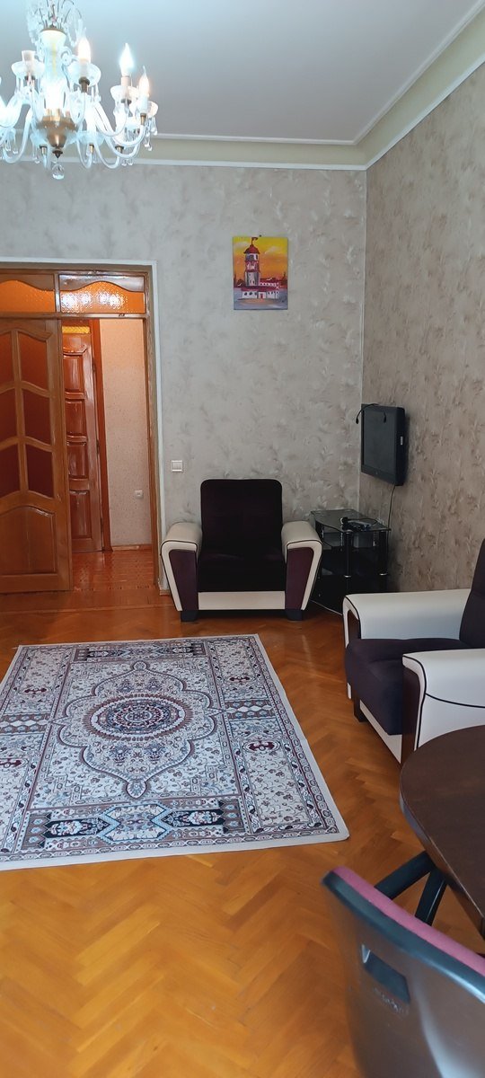 В центре города, возле площади Азнефть, напротив 6 школы с видом на парк, в 5 ти минутах ходьбы от бульвара, сдается 2 х комнатная квартира. Проект сталинка, с двумя бал ...