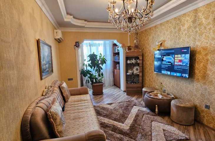 3 otaqlı,H.Zərdabi k.,"3 tac" yaş. kompleksi ilə üzbəüz hissədə, daş bina,rahat giriş-çıxişi(Həm Zərdabi k.həm də Akim Abbasov k.tərəfdən),"İnşaatçılar" m.5-10 dəq.piyada yolu,modern üslublu təmiri,zal böyüdülüb,hər 2 tərəfə balkonu(1-i zala qatılıb),kombi siste ...