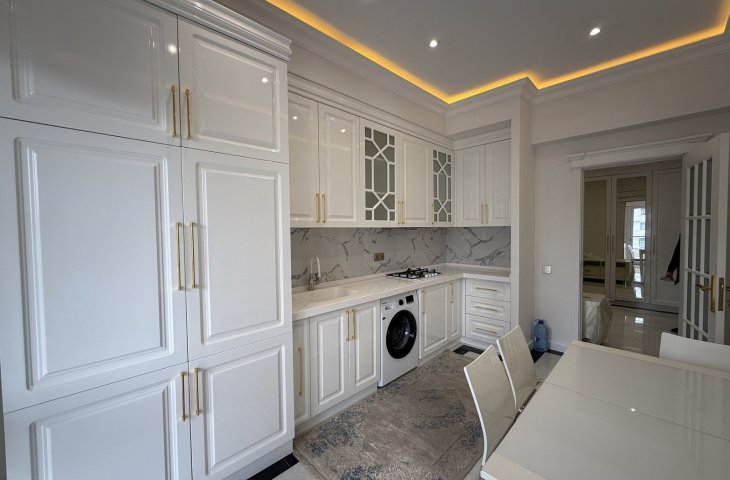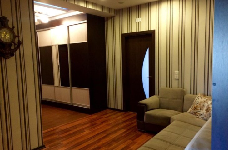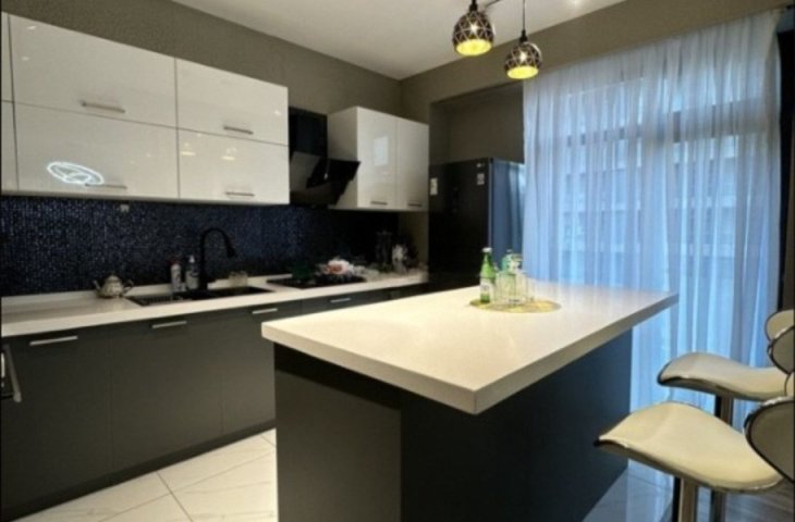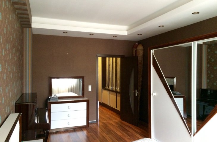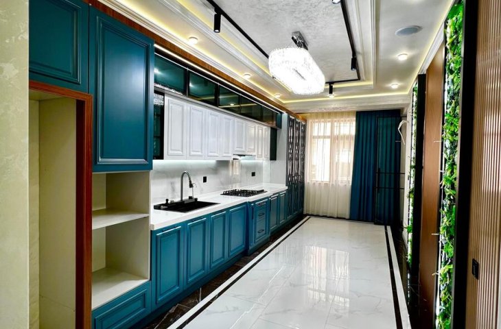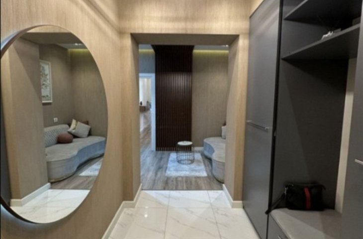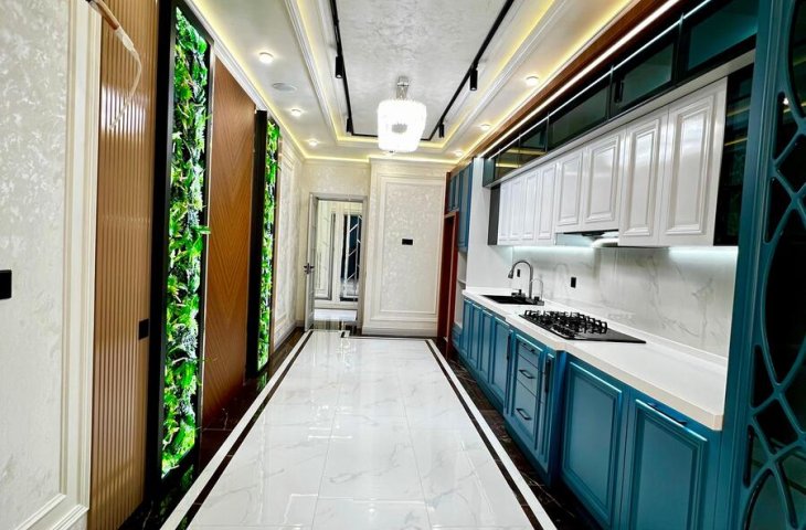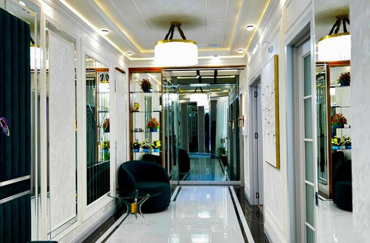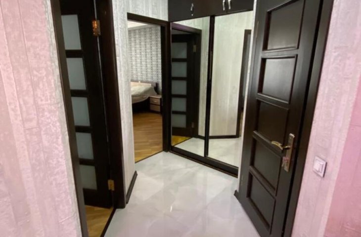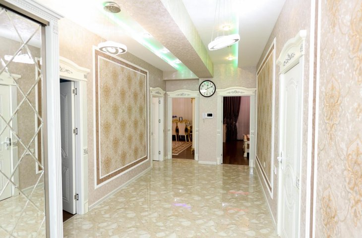 Azər Əliyev küçəsində yerləşən doqquz mərtəbəli möhkəm daş binanın ikinci mərtəbəsində yerləşən bu 95 kvadratmetrlik üç otaqlı mənzil ilk baxışdan səliqəsi və zövqlü təmiri ilə diqqət çəkir. Mənzilə daxil olan kimi geniş və işıqlı dəhliz sizi qarşılay ...
