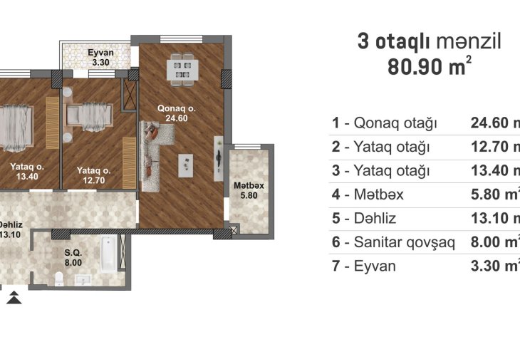 Satılır 3 otaqlı yeni tikili, 80.9 m2, Məmmədli