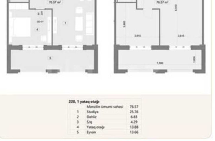 STUDİO-1otaqlı mənzil(76.1 kv.m) ...