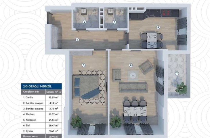 - Təmir və dizayn: Mənzilin təmirinin keyfiyyətinə və istifadə olunan materiallara diqqət yetirin.