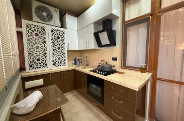 N.Nərimanov r-nu Əliyar Əliyev küçəsində 15 mərtəbəli binanın 5 mərtəbəsində sahəsi 100 kv/m olan 2/3 otaqlı mənzil satılır.Mənzil əla təmirlidir.Otaqlar geniş işıqlı və əşyalidır.Qaz su işıq daimidir.Sənədi kupçadır. ...