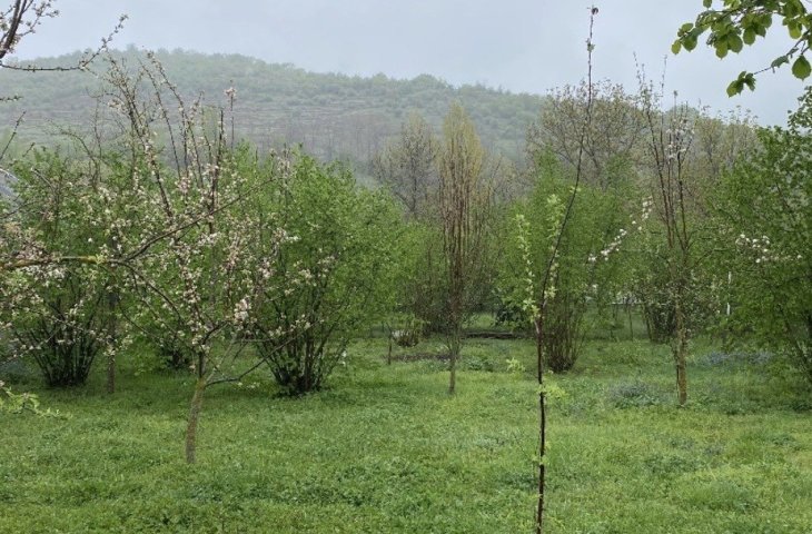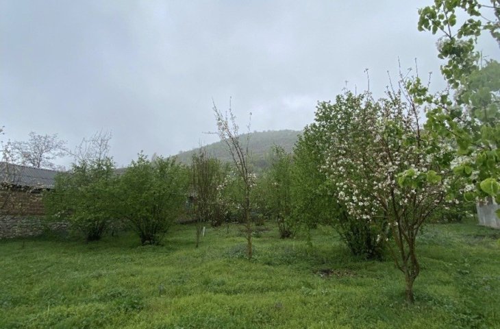 Dağ mənzərəli yerdir . Həyətin 5 metrliyindən dağ başlayır . Dağdan gələn bulaq suyu və şəhərdən gələ su , qaz , işıq , internet həyətin yanına çəkilib .Toplam 5.2 sotdu 1.2 kupçası var . 0,5 də kupçalıdır amma ayrilma olmalıdır özüm saxlamışdimki 3 belediyye ...