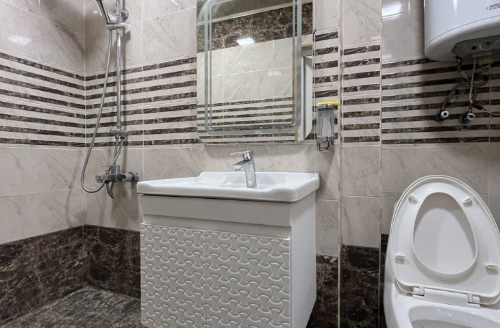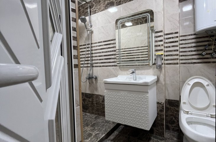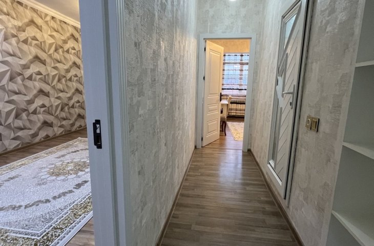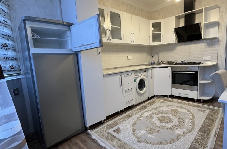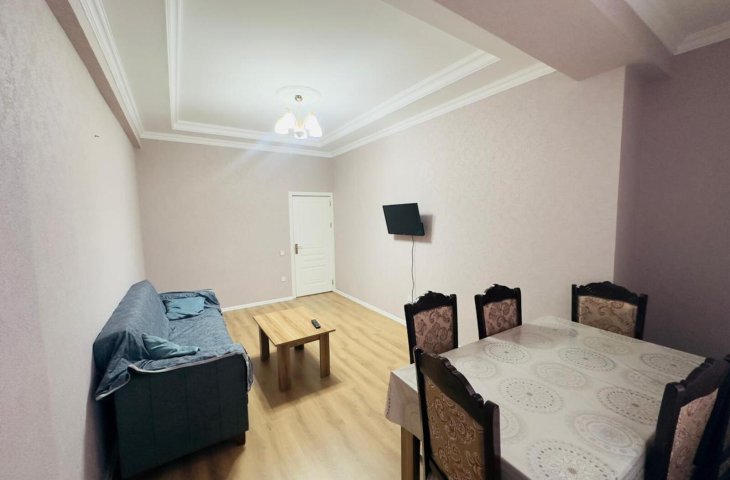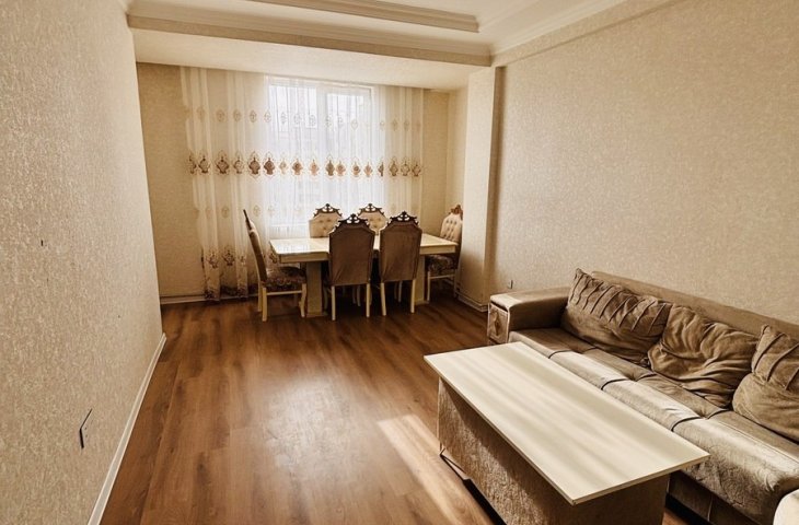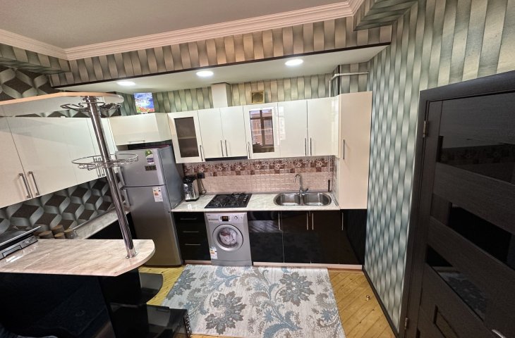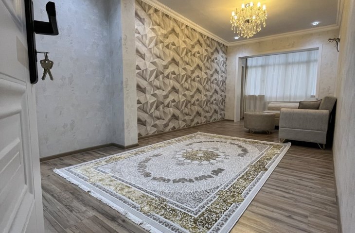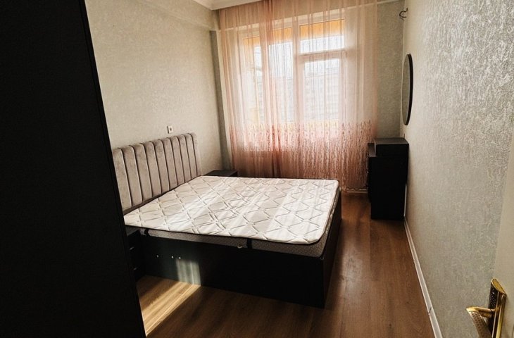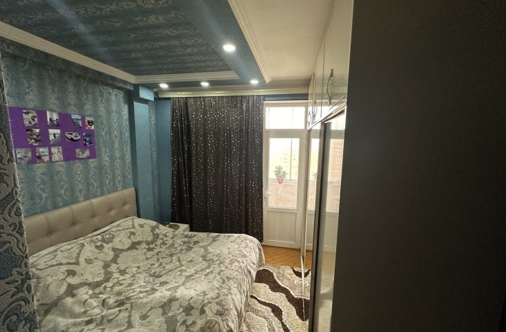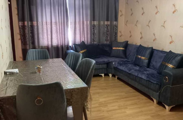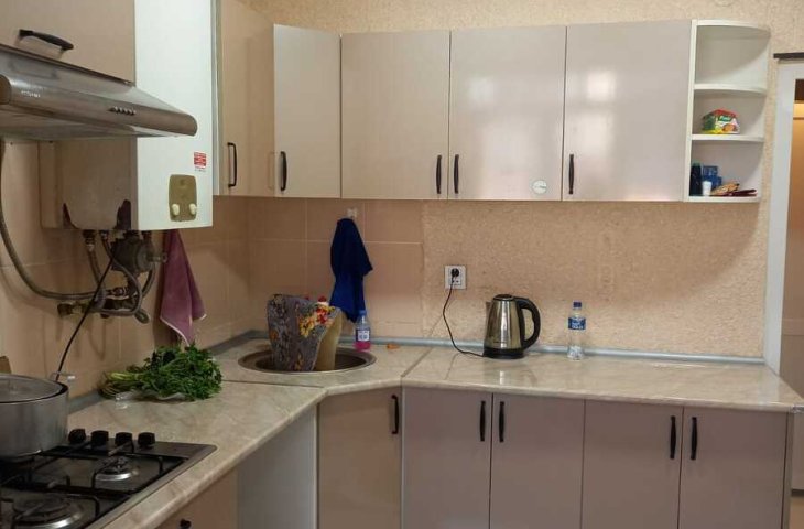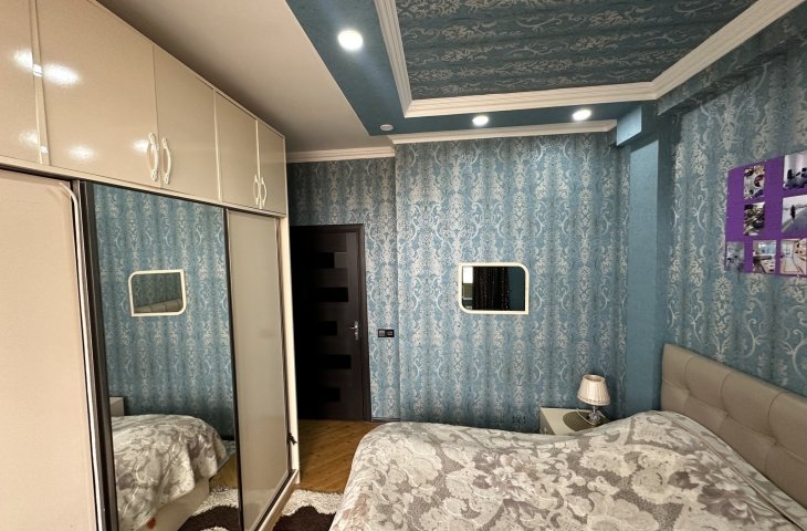 Bina yeni binadır, yolun qırağında yerləşir, parka baxır. Mənzil sadə təmirlidi, təmiz və səliqəlidi. Soyuducu, kondisioner, paltaryuyan var mənzildə. Mətbəx mebeli təzədir. Stol, stullar, divan, 2 kreslo, 2 kravat və şkaf mövcuddur. Suyu, qazı daimidir. İstilik sistemi komb ...