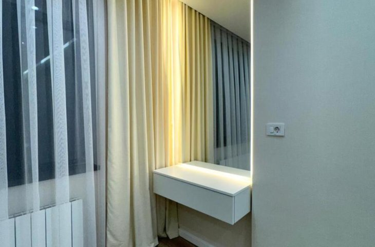 Təzə təmirdən çıxıb. Təmirdən sonra yaşayış olmayıb. 2 yataq otağı və zal-studio tiplidir. İşıqlı vitraj pəncərələrdir. Bütün mebellər və texniki avadanlıqlarla təchiz olunub. Qaz, su, işıq daimi. Internet, domofon, müşahidə kameraları, təhlükəsizlik xidməti. ...