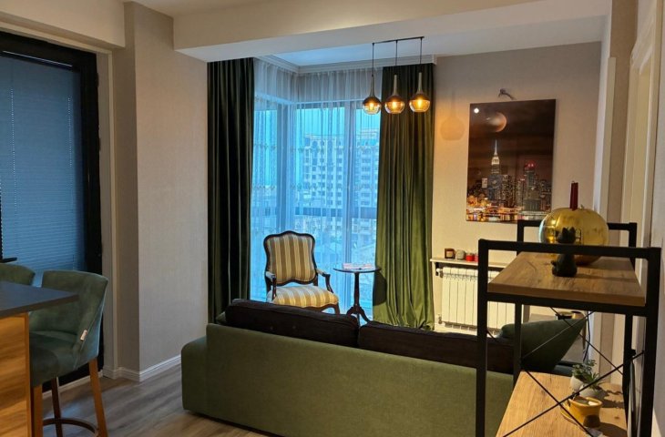 Səbail rayonunda dənizə gözəl mənzərəli yeni tikili binada ümumi sahəsi 95 kv olan 2 otaqlı əla təmirli mənzil kirayə verilir.Mənzildə istilik sistemi kombidir.Moderin interyerə malik dəbdəbəli təmir.Binanın yeraltı qarajı var. 24 saat mühafizəsi var. Binanın yaninda mək ...