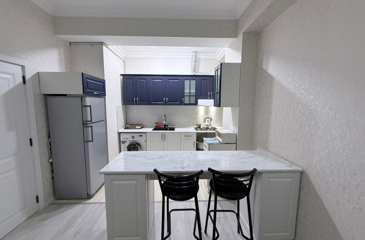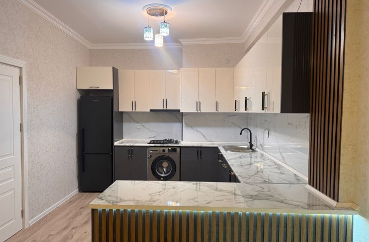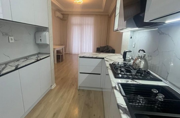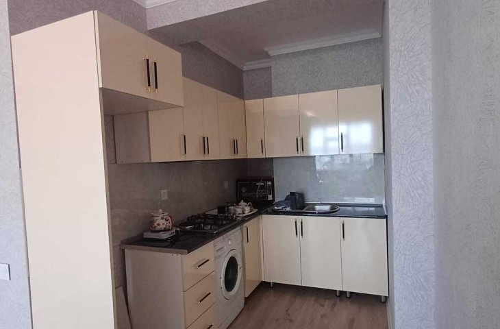 Sumqayıt şəhəri Bağçaşəhər y/k 12 mərtəbəli yeni tikili binanın 7 mərtəbəsində yerləşən , sahəsi 61m.kv. olan 2 otaqlı studio mənzil kirayə verilir. Mənzil yeni təmirlidir , təmirdən sonra mənzildə yaşayış olmayıb , qaz-su-işıq-lift daimidir , kombi istilik sistem ...