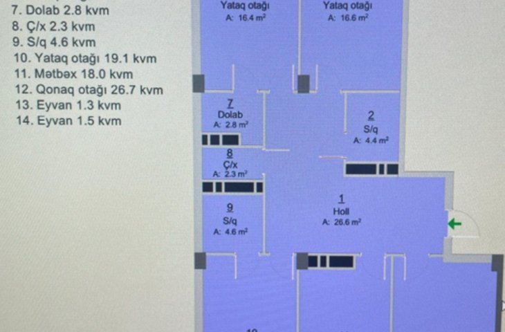 Sumqayıt şəhər.Kristal Abşeronda 3də 2 otaqlı rahat və səliqəli mənzil kirayə verilir. Mənzil 11 mərtəbəli binanın 4-ci mərtəbəsində yerləşir və ümumi sahəsi 70 kv.m təşkil edir. Mənzil tam təmirlidir, qaz, su və işıq daimidir və istilik stemi var və kondiseri var. ...
