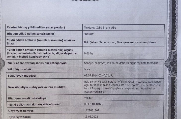 13 sot torpaq satılır, Xəzər