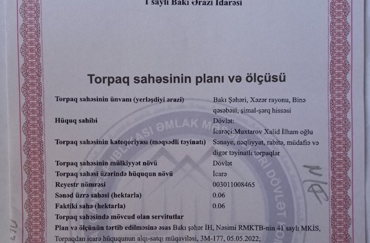 18 sot torpaq satılır, Xəzər