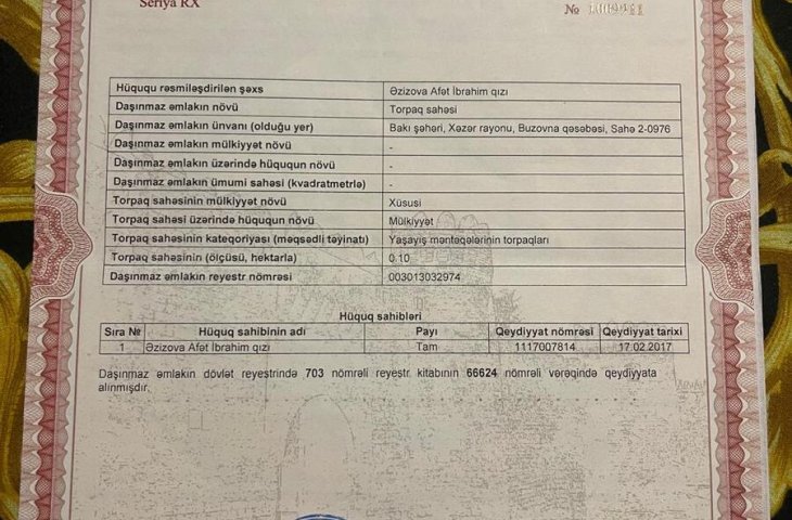 10 sot torpaq satılır, Xəzər