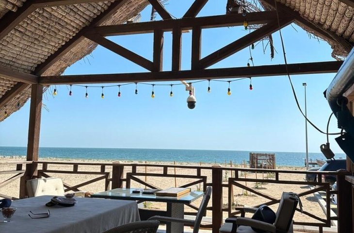 Zire qesebesi senedli cixaris hasarli qapisi motorlu asvalt isiq su . Zire baliq restoraninin arxasi. Denize sifir. ...