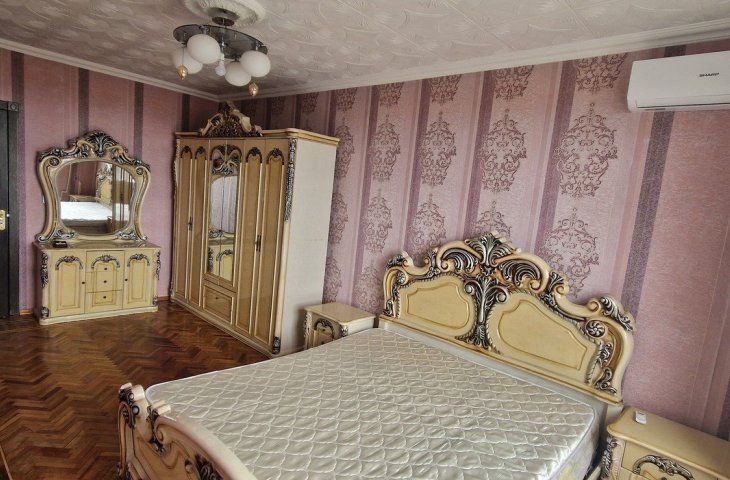 Mənzil 9 mərtəbəli binanın 2-ci mərtəbəsində yerləşir. 5 otaqlı evin 4 otağı orta təmirli, biri isə təmirsizdir. Hamam Tualet şəkillərdə gördüyünüz kimi yeni təmirdən çıxıb. Yalnız uzunmüddətli şəkildə və yalnız ailəli şəxslərə kirayə verilir. ...