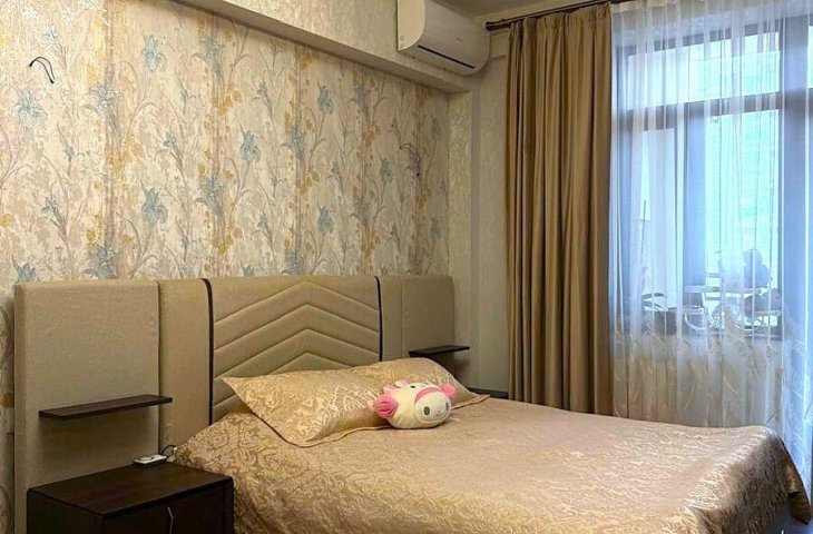 В центре города, в доме Шовкет Алекперовой! Отличный ремонт, отопление комби,сквозная,светлая квартира! 2 спальни и зал! Красивый двор, охрана, паркинг! Вода, газ, све� ...
