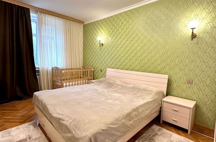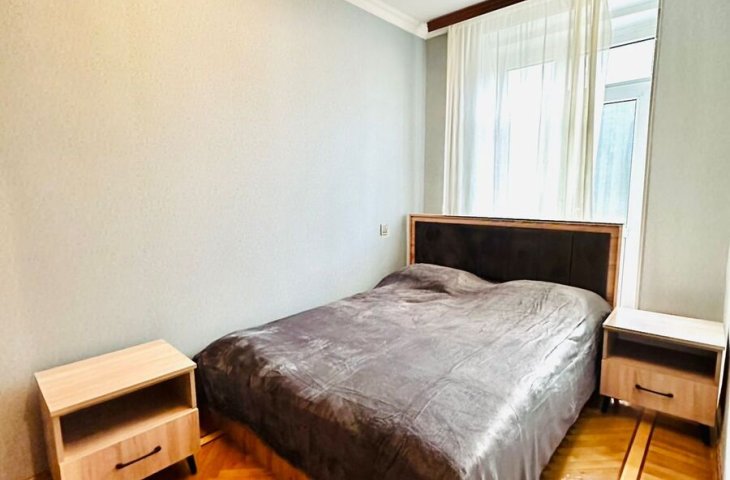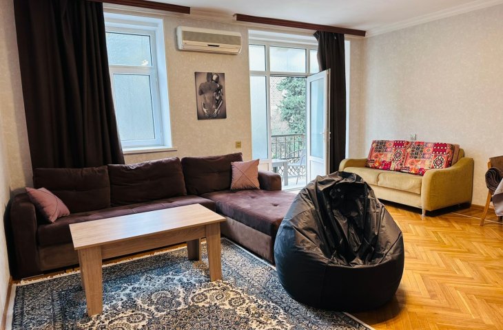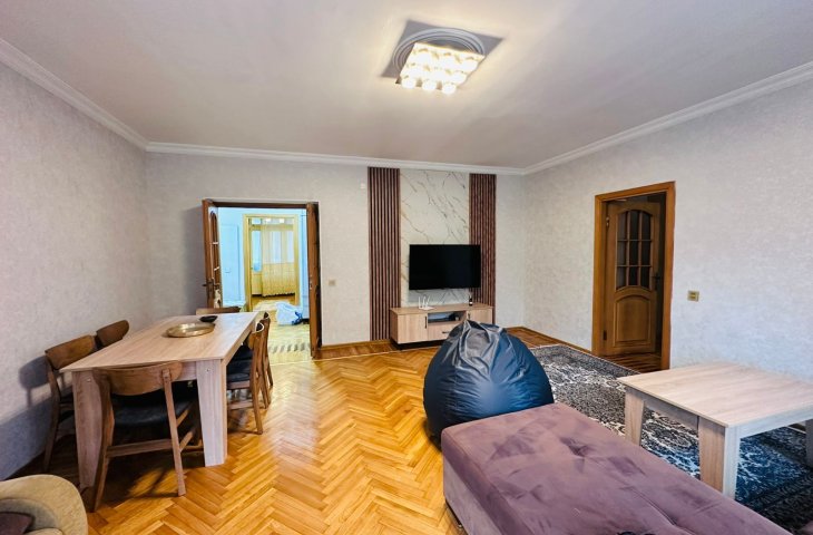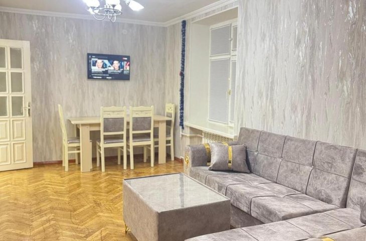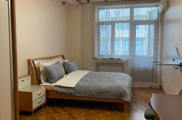 В центре,Недолеко от пл.Фонтанов,Метро Низами,28-Мая.Ок"Зимнего парка.5/2этаж3ком.80кв.2спальная.Капевроремонт.Отоп сист."Комби"Новая мебель и тех.Большой охран. зел.дво ...