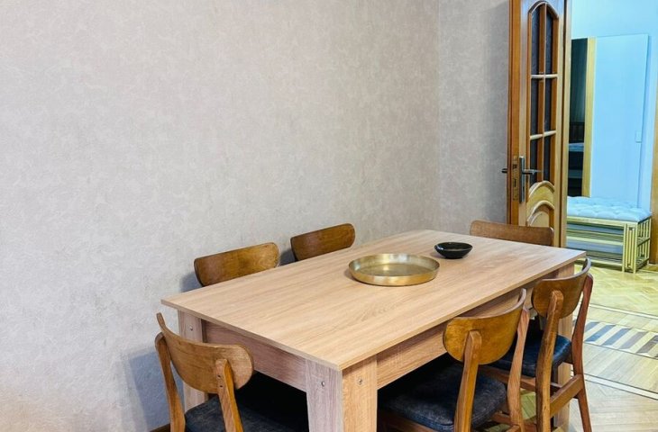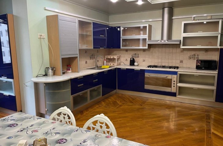 Nizami metrosu, Z.Ehmedbeyov kucesi, *Qoc et* restoraninin ustunde yerlesen yeni yasayis binasinda ela temirli 3 otaqli menzil kirayeye verilir. 16/11, 130kv.m., san qovsaqi, parket dosemesi, her bir meiset esyasi ile tehciz olunmus metbexi, merkezi istilik sistemi, split kondinsioneri, lifti, eyvan ...