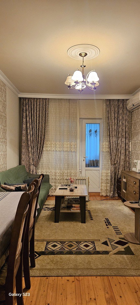 Ev super təmirlidir!9 mərtəbəli binanın 3 cü mərtəbəsi yel çəkən orta blok .Pol parketdi Qapılar qoz agacındanİki tərəfə balkon çəkilib.Əşyalarla bir yerdə satıramİstilik sistemi varQaz varSu varİnternet varTel varBir sözlə gir yaşa! ...