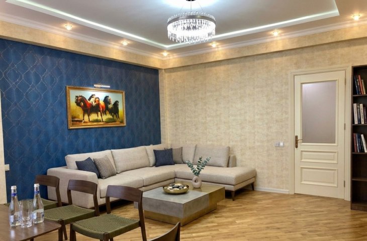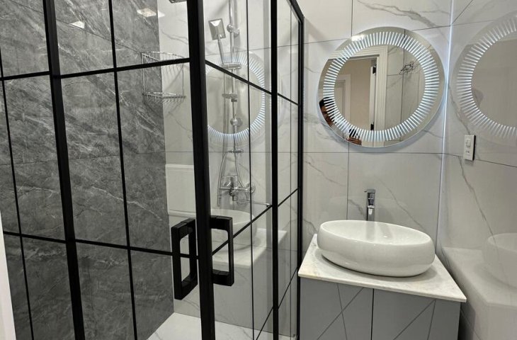İnşaatçılar metrosu yaxınlığında tam təmirli -2 otaqlı əşyalı mənzil ...