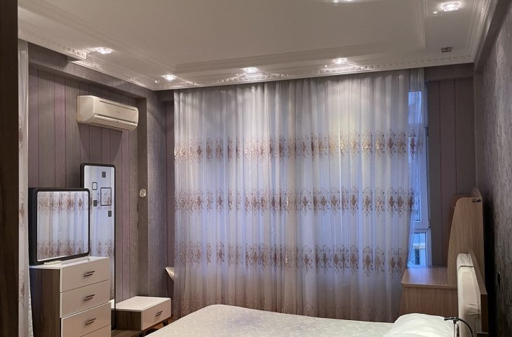 Xetaide ALI MEHKEMENIN arxasinda 17 mertebeli yenitikili binanin 13 cu mertebesinde umumi sahesi 95 kv.m. olan 2 otaqdan 3 otaqa duzeldilmis ELA TEMIRLI,VE ELA ESYALI menzil iacreye verilir.Menzil ELA TEMIRLIDIR ve ELA esyalidir.Evde gundelik istifade ucun zeruri olan her cur esya ve avadanliq movcu ...